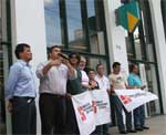 “Nessa campanha internacional em proteção ao emprego e por mais condições de trabalho, estamos também denunciando a prática fascista do assédio moral”, informou o diretor Ribamar Pacheco. Essa posição também foi defendida pelos diretores Clécio Morse e Bosco Mota. Entre as várias denúncias, tais como falta de investimento em pessoal e cobranças abusivas de taxas e juros bancários, os diretores destacaram a prática anti-sindical do Itaú e a luta pela manutenção do emprego no Real/ABN como principais pontos de destaque dessa Jornada Internacional.