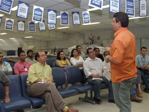 Diretores do SEEB/CE visitaram, na sexta-feira, 23/5, a agência da Caixa Econômica da Caucaia, com o intuito de debater com os funcionários locais a proposta do PCS apresentada pelo movimento sindical.