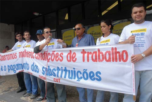 Diretores do Sindicato dos Bancários do Ceará deram continuidade à série de protestos contra as péssimas condições de trabalho e de atendimento no Banco do Brasil na quarta-feira, 11/6, em frente à agência do BB da Rua Barão do Rio Branco. A manifestação integrou a Campanha Nacional “Acorda BB” e teve como tema central a contratação de mais bancários para o Estado.