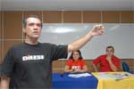 O presidente interino do Sindicato dos Bancários do Ceará e funcionário do BB, Carlos Eduardo, falou sobre campanha salarial deste ano e enfatizou a importância da organização dos bancários, especialmente dos delegados sindicais. Disse: “este ano é imprescindível qualificar o debate o máximo possível, garantindo aos delegados a organização dos locais de trabalho e fortalecermos a nossa campanha nacional” E completou: “nossa meta é aumentar o piso, a luta pelo PCS em todos os bancos, além de um novo formato de PLR”.