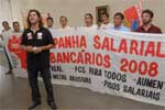 No início da semana, o Sindicato já havia realizado mobilizações no Centro da Cidade. Na terça-feira, dia 9/9, foram visitadas as agências do Banco do Brasil, Bradesco, Safra, Real, BicBanco e Unibanco. A mensagem foi uma só: união para arrancar dos banqueiros todas as reivindicações e, esgotado o processo negocial, usar a maior arma de pressão dos bancários, a greve.