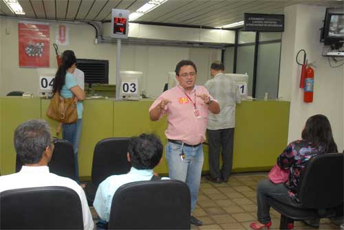 Irreverência, humor, música, muita informação e alegria. Foi com esses ingredientes que o Sindicato dos Bancários do Ceará promoveu na terça-feira, dia 16/9, novo arrastão de mobilizações pelas agências da Aldeota, em Fortaleza. Um dos maiores corredores bancários da Capital fortalezense conheceu de perto, através de peças de teatro e música, as reivindicações da categoria na Campanha 2008.