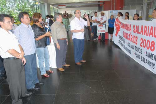 “O protesto é uma preparação à paralisação de 24 horas do dia 30 e uma reposta aos banqueiros que estão empurrando os bancários da mesa de negociação para a greve”, completou.