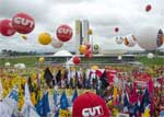 Cerca de 35 mil manifestantes tomaram a Esplanada dos Ministérios, em Brasília, 3/11. A 5ª Marcha Nacional da Classe, este ano, trouxe o lema “Desenvolvimento com Valorização do Trabalho”. Nem mesmo a chuva dispersou os manifestantes do local. Persistentes, eles levantaram bandeiras, faixas e cartazes em defesa do emprego, da garantia de renda e por medidas que defendam os trabalhadores dos impactos negativos da crise financeira internacional.