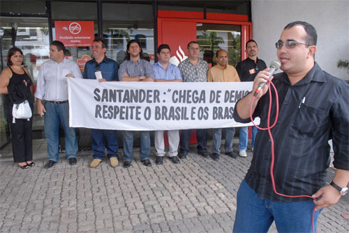 O ato aconteceu num dos mais movimentados corredores bancários da capital cearense e a agência ficou fechada por uma hora, com a presença de banda de música, faixas e muita palavra de ordem. Os trabalhadores locais seguiram a programação do Dia de Luta, realizado em todo o País, com o slogan: “Santander: Chega de Demissões! Respeite o Brasil e os Brasileiros!”.