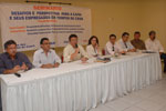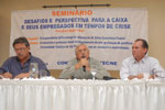 Estavam presentes na mesa de abertura do evento o presidente do SEEB/CE e empregado da Caixa, Marcos Saraiva, o presidente da Associação de Pessoal da CEF (APCEF/CE), Laércio Alencar, e o vice-presidente da Associação dos Aposentados da CEF (ACEA), José Alípio. Marcos Saraiva afirmou que a idéia de realizar o seminário nasceu da necessidade de defesa dos trabalhadores num período em que várias demissões estão sendo efetuadas mundo afora. “O Sindicato dos Bancários já tem uma tradição de discutir o papel da Caixa como banco público, e, nesse período de crise, a CEF pode exercer um papel fundamental de agente de desenvolvimento econômico”, declarou.