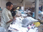 Uma das mais novas funcionárias da Socrelp é Glauciane Pereira, 20 anos. Indicada no ano passado para o trabalho pela tesoureira e vizinha “Toinha”, ela separa papel, garrafa e “o que vier”. Apesar de ganhar apenas R$ 50,00 por semana, Glauciane afirma que com o dinheiro ela ajuda a pagar as contas da família, como a luz e a água. “Gosto de trabalhar aqui, mas queria fazer outra coisa onde pudesse ganhar mais”, vislumbra. |