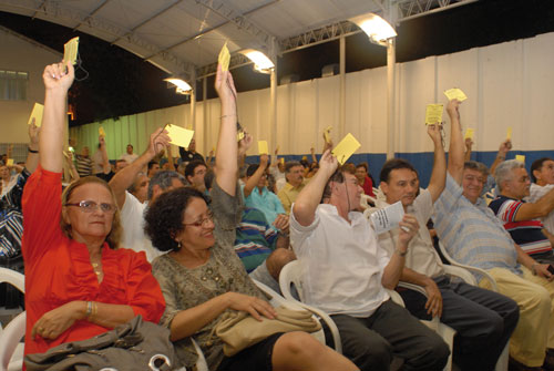 No último dia 26/3, o Sindicato dos Bancários do Ceará realizou assembléia geral extraordinária, dando início, assim, ao processo eleitoral para o triênio 2009/2012. Conforme prevê o Estatuto do SEEB/CE, os associados, em pleno gozo de seus direitos nos termos do Capítulo III, discutiram e deliberaram sobre a escolha da Comissão Eleitoral, que dirigirá as eleições oficiais do Sindicato este ano. Na mesma assembléia foi aprovado o calendário oficial da eleição.