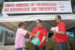 A Campanha de arrecadação de donativos para os desabrigados das enchentes no Estado, encampada pelo Sindicato dos Bancários do Ceará desde o dia 14/5, fez nova arrecadação no último sábado, dia 6/6, na praça da Igreja São Raimundo, no bairro Rodolfo Teófilo. Até agora a Campanha arrecadou cerca de 1 tonelada de alimentos e mais de 500 peças de roupa e de cama, mesa e banho.