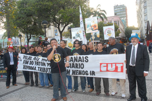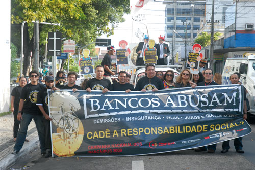 Além das faixas e cartazes, com uma alegoria representando os banqueiros dos bancos públicos e privados, o Sindicato mostrou que, mesmo com a crise financeira, o setor financeiro lidera os ganhos no primeiro semestre de 2009, respondendo por 23,5% do lucro total das 303 empresas de capital aberto do Brasil que já apresentaram seus balanços. Entre as palavras de ordem, destacaram-se os pedidos por responsabilidade social, que se faz com geração de empregos, melhores salários, redução das filas, queda dos juros e tarifas, mais segurança e condições dignas de trabalho.