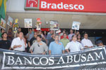 Como parte da Jornada Nacional Unificada de Lutas e seguindo orientação da Contraf/CUT, dirigentes do SEEB/CE realizaram, na tarde da última sexta-feira, 28/8, uma manifestação em frente ao Bradesco dos peixinhos, localizado na Rua Barão do Rio Branco, em Fortaleza. Este foi o primeiro ato da nova diretoria do Sindicato dos Bancários do Ceará, que, na ocasião, denunciou os abusos dos bancos e cobrou responsabilidade social.