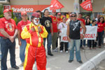 Ontem, 1º/10, a manifestação do Sindicato dos Bancários se extendeu para além da Capital. Em Maracanaú, na Região Metropolitana de Fortaleza, dirigentes da entidade fecharam sete agências bancárias na área próxima à Ceasa (Central de Abastecimento do Ceará), incentivando bancários a aderirem ao movimento e clientes a apoiarem a greve. Como de praxe, não faltou bom humor no ato organizado pelo SEEB/CE, com a contribuição essencial da dupla de emboladores Marreco e Jotinha e dos humoristas Coloral e Neorlândio, que atraíram a atenção do público.