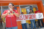 Mais uma vez bancários em greve estiveram no Centro de Caucaia conscientizando a população sobre os motivos do movimento paredista da categoria. Nessa guerra, todas as armas foram válidas: faixas, adesivos, carro de som e, claro, o diálogo com os moradores da cidade e clientes dos bancos. O Sindicato dos Bancários esteve nas agências do Itaú e do Bradesco, e deixou claro que a culpa da greve é dos banqueiros, que insistem em ignorar as reivindicações da categoria e não apresentam uma proposta digna.