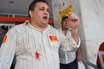 MANIFESTAÇÃO PROSSEGUE – Mesmo com o lamentável incidente, o arrastão organizado pelo Sindicato dos Bancários no Centro de Fortaleza continuou pelo restante da manhã de quarta-feira. Os dirigentes visitaram inúmeras agências, com especial atenção aos bancos privados que conseguiram interdito proibitório, Unibanco, Itaú e Bradesco. Eles fizeram apitaço às portas e dentro das unidades, denunciando a postura intransigente dos banqueiros com a categoria e a sociedade.