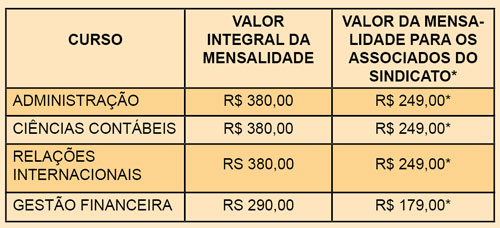 Defender os interesses da categoria é o objetivo precípuo do Sindicato dos Bancários do Ceará. Para tanto, amplia cada vez mais o seu leque de serviços profissionais numa demonstração de que o associado e seus dependentes merecem o melhor. Por entender que a educação é também fator muito importante na vida das pessoas, o Sindicato firmou convênio com as Faculdades pertencentes ao Grupo Oboé para oferecer ao associado, seus dependentes e os funcionários, os cursos de Bacharelado em Administração, Ciências Contábeis e Relações Internacionais e o curso Tecnológico em Gestão Financeira, com descontos especiais.