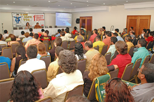 Na abertura, a professora Lydia Brito falou sobre as novas gestões de pessoas no sistema capitalista atual. De acordo com Lydia, as novas gestões tendem a suscitar no trabalhador uma postura alienadora. “Cabe aos sindicatos mudar isso”, afirmou. Lydia aponta a terceirização como uma das principais manobras do patronato para rebater o movimento sindical, pois os sindicatos não representam oficialmente essas pessoas e, em caso de greve, a terceirização enfraquece o movimento.