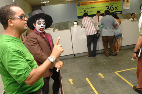 Exploração da classe bancária – Em um dos setores mais lucrativos do País, a exploração trabalhista também é bastante evidente. Em ato na agência Fortaleza do Unibanco, o Sindicato dos Bancários denunciou as más condições de trabalho e de atendimento do banco, pois o pouco número de funcionários nas agências resulta sempre em longas filas. O Grupo Trupe Tramas de teatro encenou o cotidiano de uma “bancária escrava”, explorada pelo patrão banqueiro, e os diretores atentaram para conquistas trabalhistas importantes.