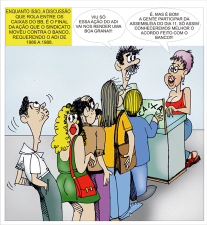 O Sindicato dos Bancários move contra o Banco do Brasil uma ação que visa o pagamento de horas extras de caixas executivos que trabalharam como tal no período de 27/8/86 a 26/8/88. Em várias instâncias, o pleito dos empregados do BB vem obtendo decisões favoráveis. E como é da rotina da justiça brasileira, os processos caminham a passos de tartaruga com evidente prejuízo para os trabalhadores.