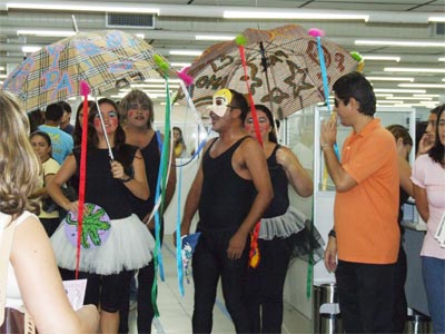 Peça – O Sindicato dos Bancários levou as agências da Caixa Econômica, Bradesco e Banco do Nordeste, no centro da cidade, a peça “Maria sem vergonha de ser mulher”, encenada pela Trupe Tramas. Com músicas e recitação de poesias, a homenagem agradou a funcionários e clientes das agências. Surpresos, vários clientes exclamavam: “Adorei!” Outros procuravam saber de quem tinha sido a iniciativa. Uma delegação do Sindicato acompanhou as apresentações.