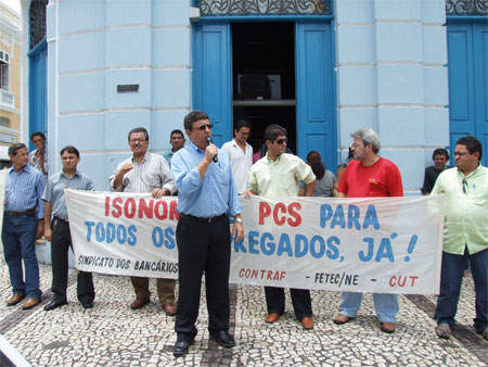 No último dia 27/3 aconteceu o Dia Nacional de Mobilização dos Empregados da Caixa Econômica Federal. Em Fortaleza, os bancários fizeram um grande protesto na agência da CEF na Praça do Ferreira. Esse protesto vem como resultado das negociações permanentes que não têm avanços e sim, retrocesso. A mobilização objetivou envolver toda a categoria e iniciar esse debate imediatamente sobre as negociações específicas permanentes.