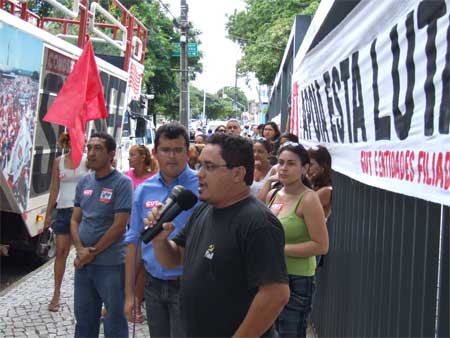 Trabalhadores de diversas categorias foram às ruas na segunda, dia 23/4, protestar contra a Emenda 3, que pode retirar direitos se o Congresso Nacional derrubar o veto do presidente Lula. No Ceará, os trabalhadores compareceram à porta da Fiec para manifestar apoio ao veto de Lula à Emenda 3. Eles atenderam a uma convocação da CUT, que promoveu uma série de atividades em todo o Brasil.