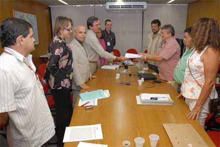 O Acordo Coletivo dos funcionários do Banco do Nordeste (BNB) foi finalmente celebrado no dia 9/5, no Passaré, com a presença do presidente em exercício do banco, Pedro Rafael Lapa e do diretor administrativo, Victor Samuel da Ponte. Com a celebração do acordo, a Comissão Nacional dos Funcionários do BNB (CNFBNB-Contraf/CUT) cobrou a implantação imediata das cláusulas ponto eletrônico, folgas (ausências abonadas), e vales-transporte, bem como a elevação da dotação de horas extras. Com relação ao adicional de PLR e à licença-prêmio, como não havia posição da Superintendência de Desenvolvimento Humano (SDH), os assuntos serão tratados em uma nova reunião com o presidente do banco, Roberto Smith, a ser agendada em breve.