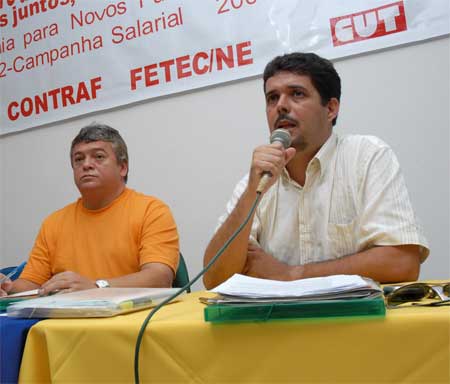 Convidado para falar sobre campanha nacional, o economista e supervisor técnico do Dieese/CE, Reginaldo de Aguiar Silva, falou das perspectivas da campanha nacional dos bancários deste ano e como foram as campanhas de outras categorias de 2006 até agora, que vêm recompondo as perdas. Segundo ele, a maioria ficou na faixa de reajuste acima da inflação, com ganho real.