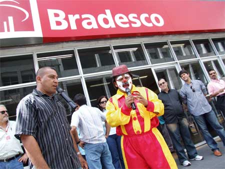 Nesta quarta-feira, 30/5, o Sindicato dos Bancários (SEEB/CE) realizou o Dia Nacional de Lutas na agência Bradesco/Verdes Mares, que fica na rua Floriano Peixoto. O ato foi uma deliberação nacional e teve como objetivo pressionar o banco a retomar o processo de negociação permanente e atender as reivindicações dos bancários. Os funcionários do Bradesco e os diretores do Sindicato presentes protestavam por melhores condições de trabalho, maior participação nos lucros e resultados da empresa, auxílio-educação, melhorias no plano de saúde e inclusão dos pais.
