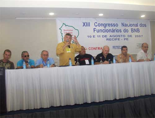 Durante os dias 10 e 11/8, os funcionários do Banco do Nordeste do Brasil estiveram reunidos em Recife (PE) no XIII Congresso Nacional dos Funcionários. Os participantes reforçaram a tese de mesa única na campanha nacional 2007, além da nova composição da Comissão Nacional, coordenação executiva, bem como o mandato de dois anos para seus integrantes. A minuta de reivindicações específicas será entregue esta semana e a 1ª rodada de negociação está sendo agendada para a semana seguinte.