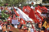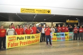 Bancários e Centrais Sindicais fazem manifestação no Aeroporto de Fortaleza