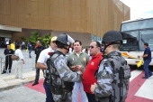 Sindicato realiza protesto e BB chama batalhão de choque da polícia