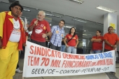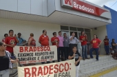 Sindicato realiza ato denunciando as péssimas condições de trabalho e atendimento na agência do Bradesco do Maracanaú,